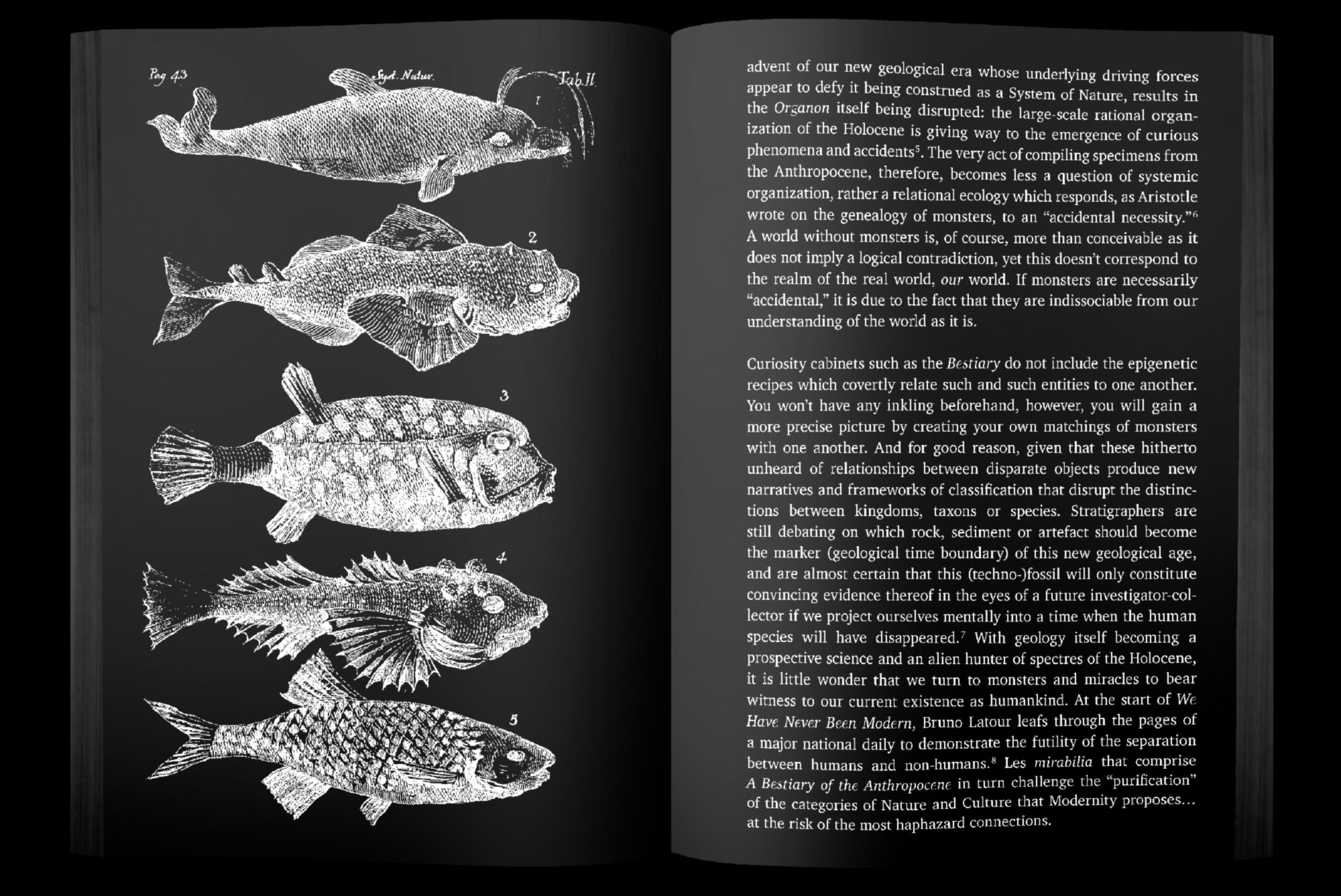 A BESTIARY OF THE ANTHROPOCENE includes: 100+ original collages and handmade pointillist illustrations | 60 written observations on selected hybrid specimens & creatures | 11 long contributions, and original critical essays by leading experts.